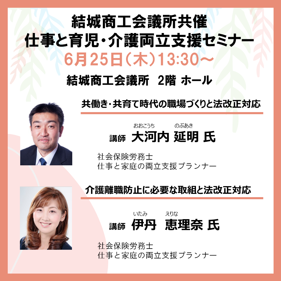 【結城商工会議所共催】仕事と育児・仕事と介護の両立支援セミナー